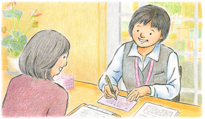 施設利用に関する電話相談や面談、施設見学のご案内、在宅復帰に向けたカンファレンスの開催や住環境整備等、様々な場面で介護生活のお手伝いをさせていただきます。